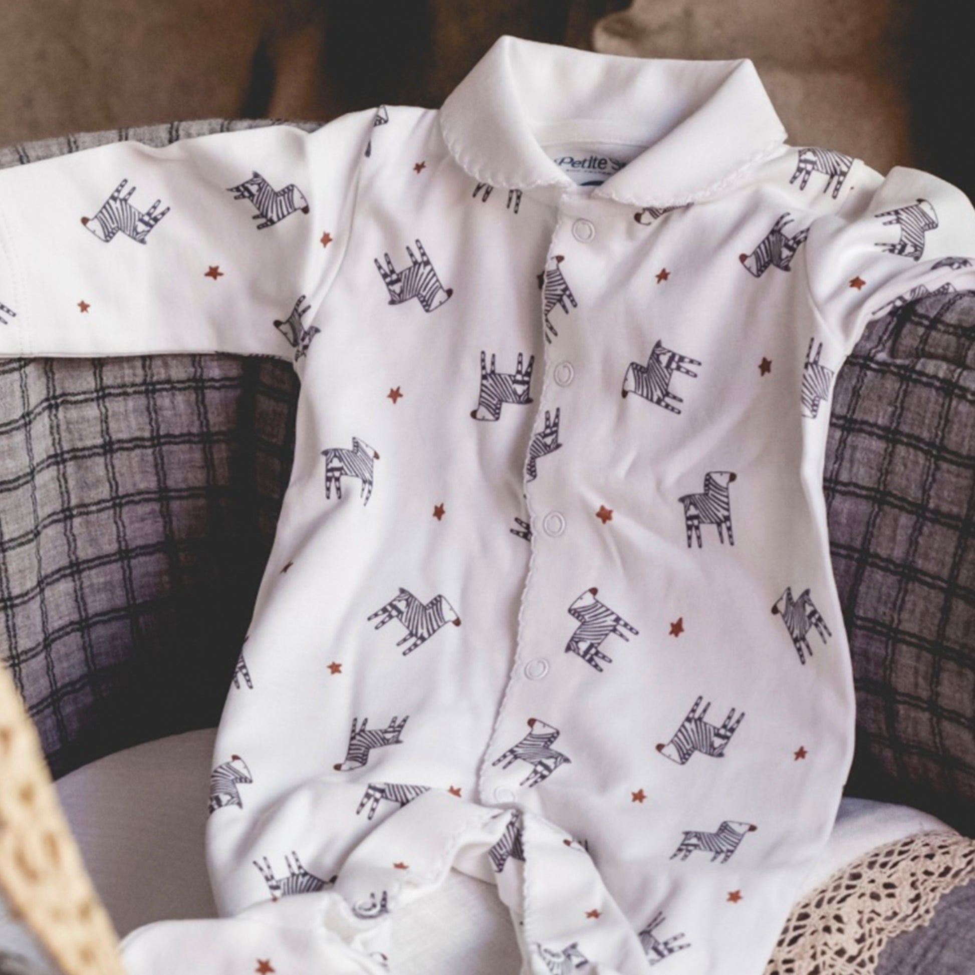 Esta prenda forma parte de la colección cápsula Petite Siesta x Algo de Jaime, con dibujos originales de cebras dibujadas por Jaime y estampado diseñado por Petite Siesta
